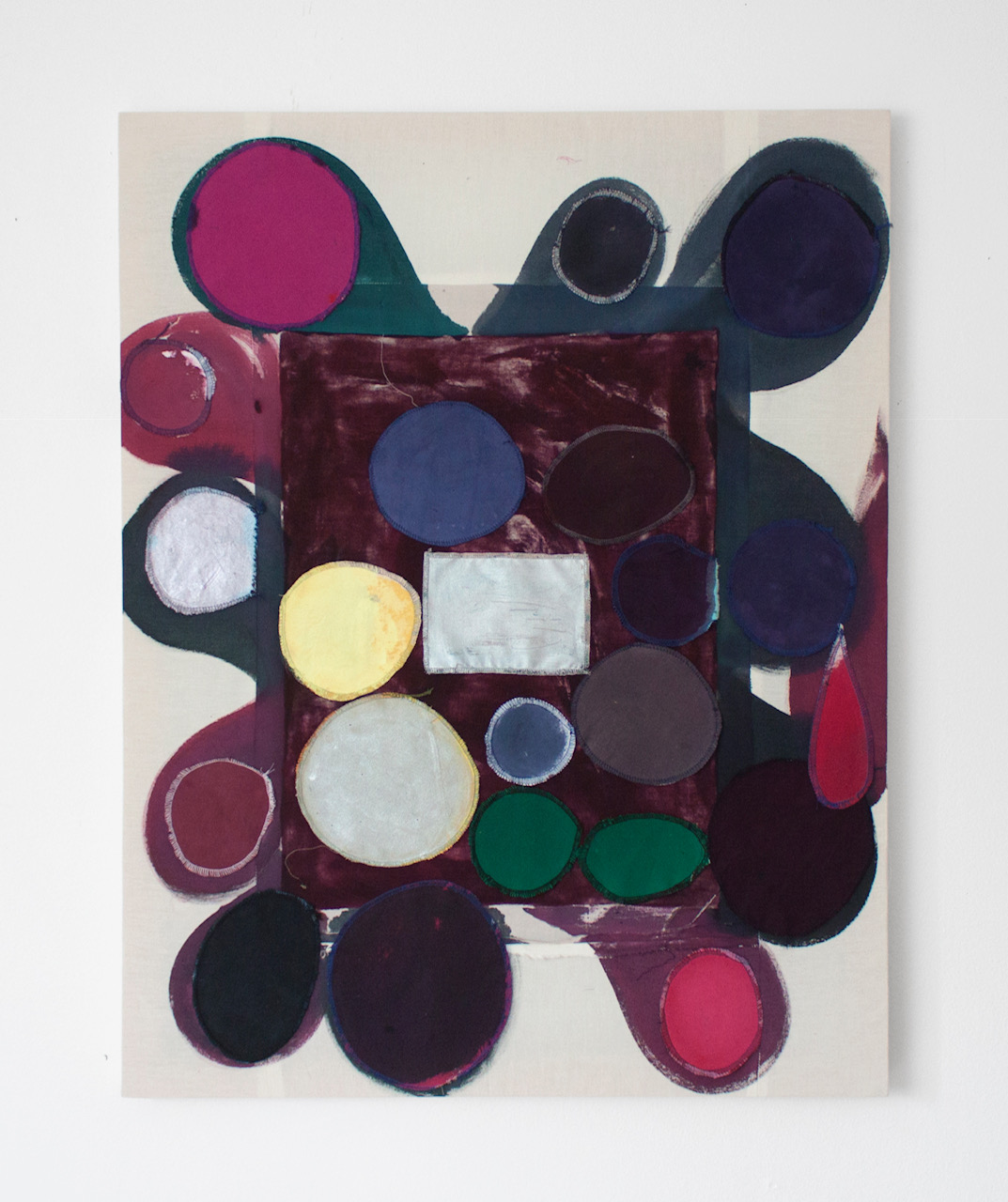 Stray Light Shadow Between is a sum of many moving parts. The paintings have a kind of restlessness on their surfaces; they don’t seek a specific end or conclusion. Many movements and gestures come together in irregular rhythms, often interrupted by sprawling seams and stray threads that stand as a testament to their making. Their faces show evidence of time and friction, odds and ends rubbing up against one another, creating sparks of light and swirls of murky indecision.